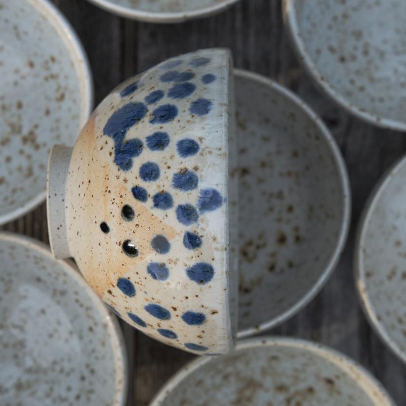 Työskentelen pääasiassa dreijalla ja teen sekä käyttökeramiikkaa että suurempia astioita ja muotoja kivitavarasavesta. Viime aikoina olen myös alkanut tutkia posliinia materiaalina. Poltan teokseni sähköuuneissa Studio Nybackalla tai, kun siihen on mahdollisuus, puu-uuneissa. Puupoltot ovat lähes taianomaisia tilaisuuksia.